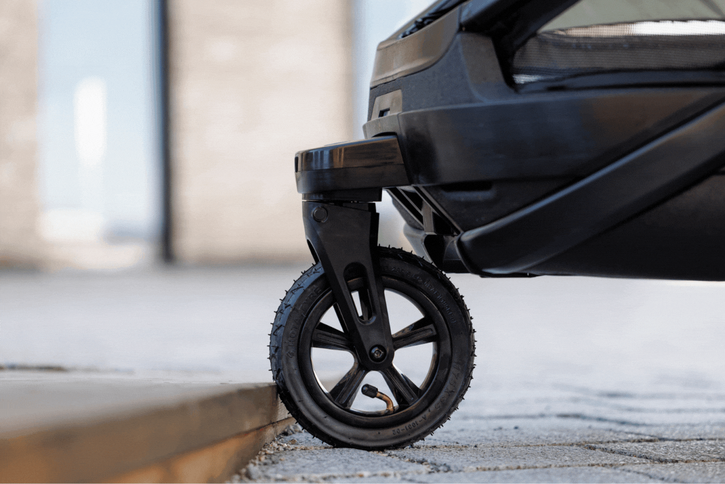 L’Outback Next utilise une solution différente : la roue de la poussette peut être rangée sous la remorque. Elle est également équipée d’une roue de poussette gonflable avec suspension et verrouillage pivotant, ainsi que d’une base solide et étanche qui protège de la neige, de la boue et de la pluie.
